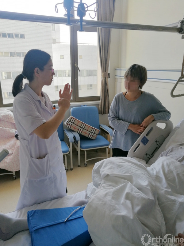 THA术后康复师给患者及家属讲解术后康复注意事项
