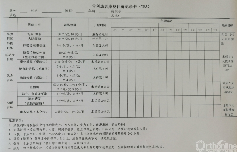 解放军总医院第七医学中心骨科患者院内康复计划表
