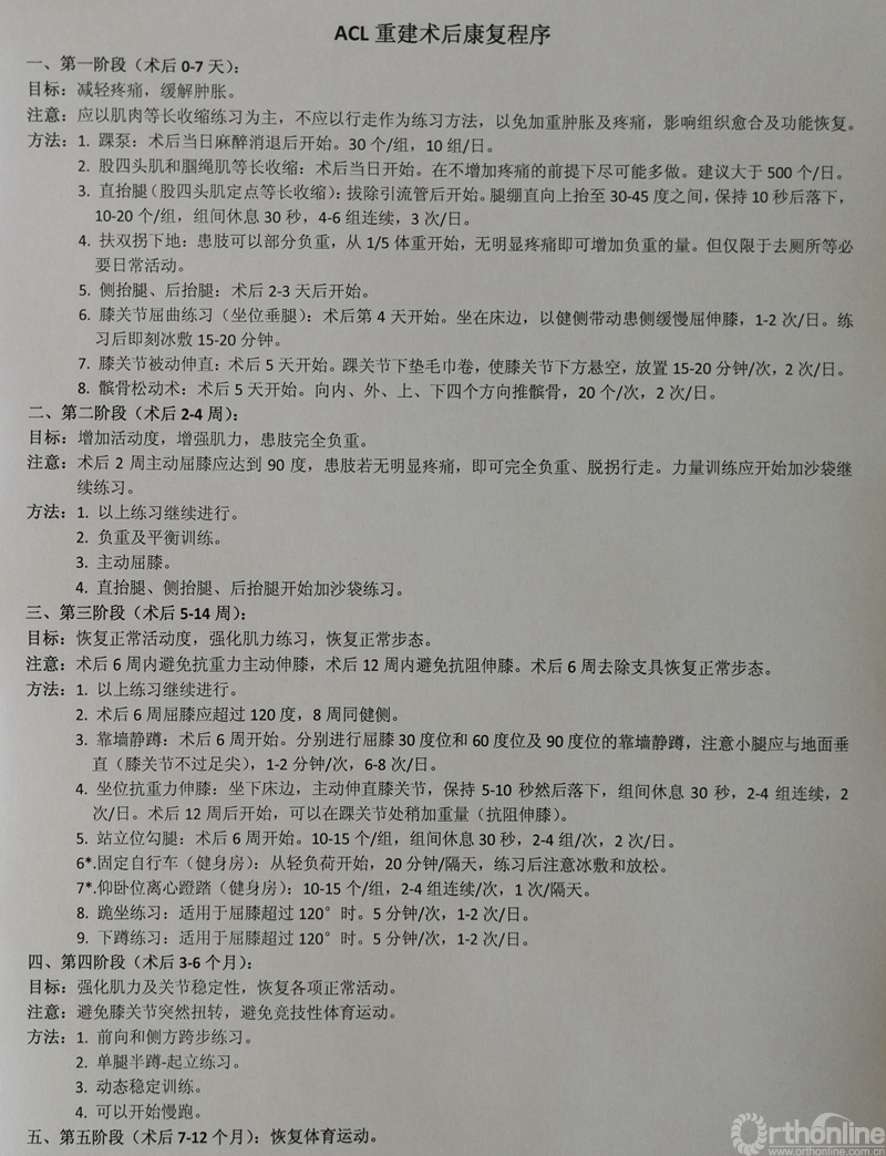 解放军总医院第七医学中心膝关节ACL重建术后康复程序