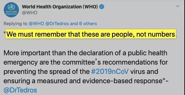 想起世卫组织总干事谭德赛的一句话:我们必须记住,他们是活生生的人,不是数字!