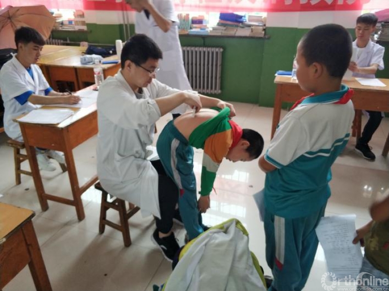 2019年,刘海鹰教授作为中华预防医学会脊柱疾控专委会主委,启动了“共筑脊梁,重在预防——中国青少年脊柱脊柱侧弯筛查与救助”活动,他跟随团队,深赴甘肃定西、宁夏银川、山西汾阳和北京房山等地,对数万例中小学生进行脊柱义诊筛查。