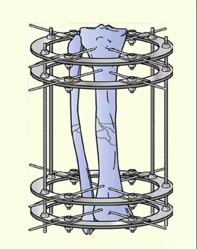 第二次世界大战结束之际,苏联医生伊里扎洛夫在修自行车时,突发灵感,发明了类似于自行车车轮轮毂和辐条的骨骼外固定支架。这种手术操作简单,还方便拆卸,从而解决了内固定的反复手术缺陷。