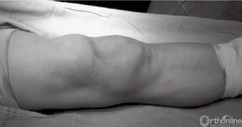 最后,松开止血带,进一步止血。用生理盐水冲洗伤口,可放置引流。采用20号薇乔缝线连续缝合髌前囊。皮下层可采用反向方式缝合,并用尼龙/聚丙烯/金属短钉闭合伤口。伤口包扎于膝盖水平以上,并在膝关节伸展位支具固定。