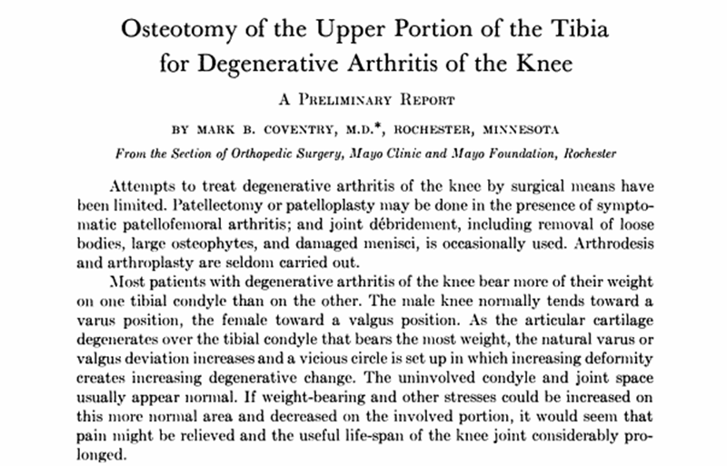 [2]Coventry MB. Osteotomy of the Upper Portion of the Tibia for Degenerative Arthritis of the Knee. The Journal of bone and joint surgery.1965,47(5):984-990.