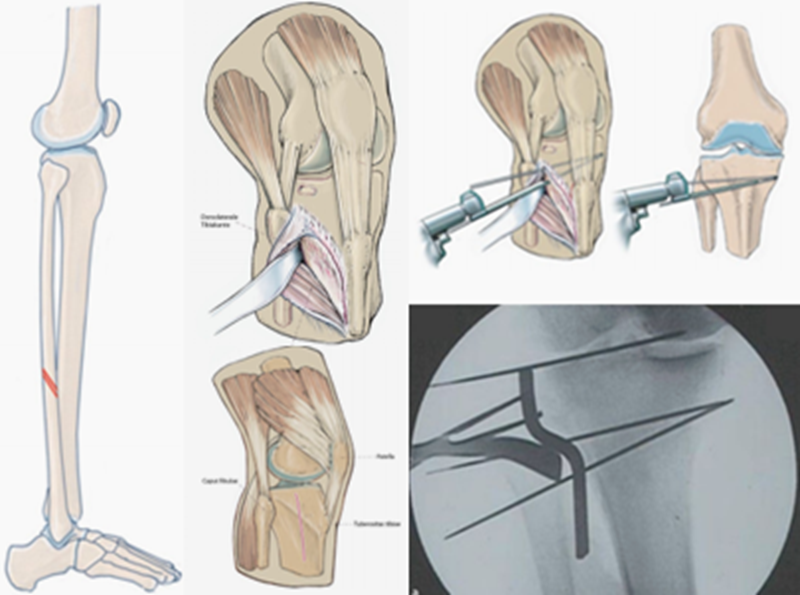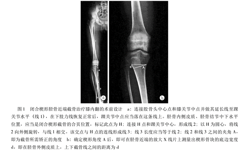 目的:通过胫骨近端截骨,将力线从磨损的内侧间室转移至相对正常的外侧间室,延缓内侧间室的破坏,延长膝关节的使用寿命,推后或避免行膝关节置换术。