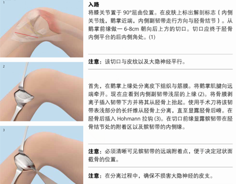 OWHTO为胫骨近端内侧楔形截骨,逐渐撑开截骨端,改善力线。