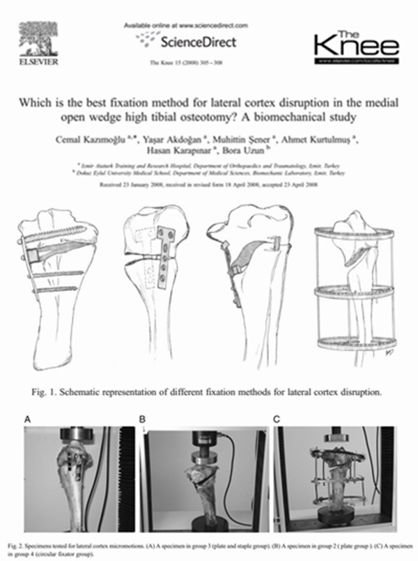 开放楔形截骨,采用不同固定方法,结果显示:外侧合页破坏时,钢板螺钉固定组比骑缝钉固定组、外固定支架组,能够提供更好的稳定性。