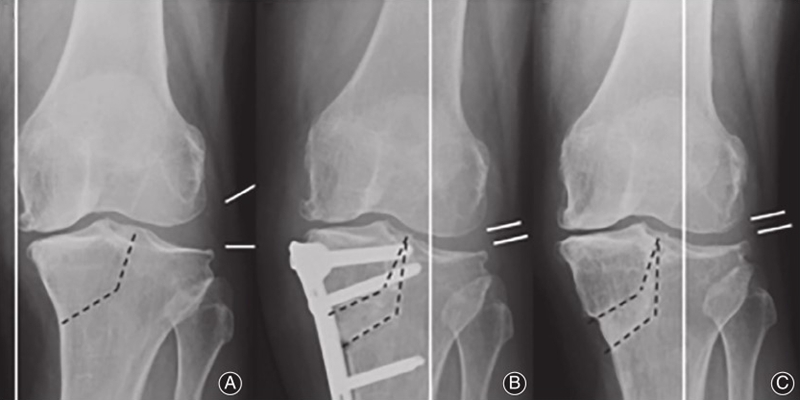 [21]Moon HS, Choi CH, Yoo JH, Jung M, Lee TH, Byun JW, Kim SH. An Increase in Medial Joint Space Width After Medial Open-Wedge High Tibial Osteotomy Is Associated With an Increase in the Postoperative Weight-Bearing Line Ratio Rather Than With Cartilage Regeneration: Comparative Analysis of Patients Who Underwent Second-Look Arthroscopic Assessment. Arthroscopy. 2021 Feb;37(2):657-668.e4. doi: 10.1016/j.arthro.2020.09.042. Epub 2020 Oct 3. PMID: 33022365.