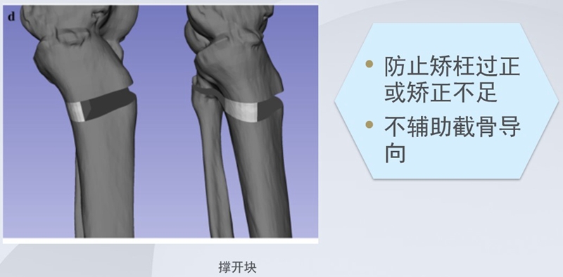 3D打印导板(PSI)的辅助技术是解决HTO计划和执行准确性需求的一种方法,经3D打印制作具有截骨、矫形和导向功能的导向器,以达到下肢力线的精准矫正。特别是对于初学的骨科医生。利用3D打印技术打印个性化截骨矫形导板,辅助术中截骨及矫形,预期矫形结果,减少术中透视,有利于缩减手术时间及减少并发症的发生。世界各地的学者报道了各种各样的3D打印辅助截骨的装置。从单纯辅助撑开的3D打印“撑开块”,到复杂的用于术中准确定位点、线的位置、引导手术截骨的方向和深度、角度(撑开高度)控制、引导内固定放置等“组合式导板”等。