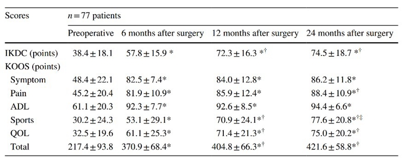 Seyed等人报道1例股骨源性膝内翻合并ACL撕裂的年轻患者,采用股骨远端截骨术联合ACLR治疗。术后6个月Lachman和轴移试验均为阴性。Lysholm和IKDC评分分别为99和94.4[8]。