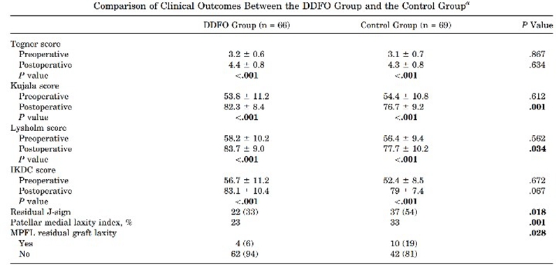 对于MPFLR术后重返运动的情况,Brooks等人通过系统回顾和荟萃分析指出MPFLR联合截骨术组与单纯MPFLR组的患者恢复运动没有显着差异,截骨术不影响患者重返运动时间[20]。