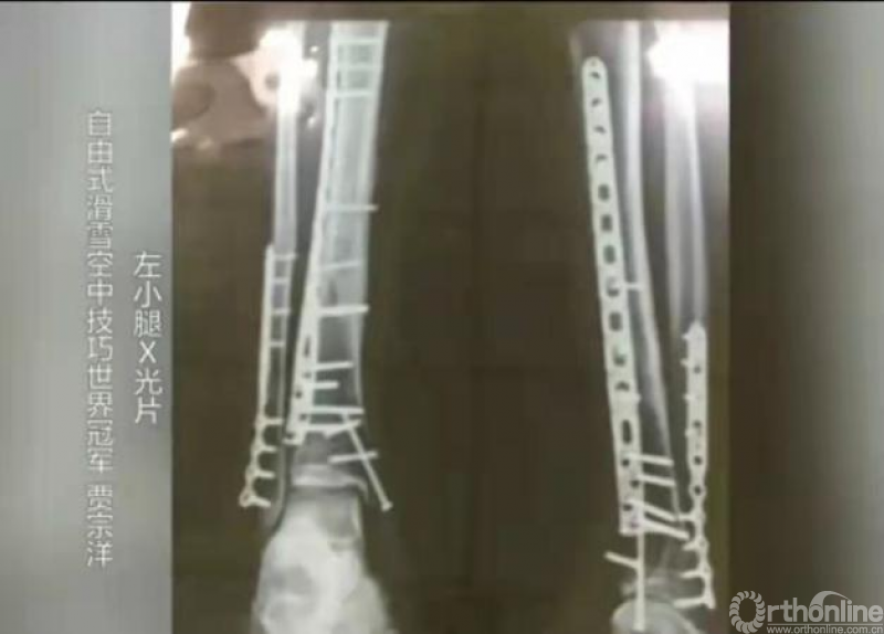 众所周知,本届冬奥会贾宗洋是带伤参赛。相信大家都看过这张X线片,这是贾宗洋左腿受伤术后的片子,整整打了22根钢钉。