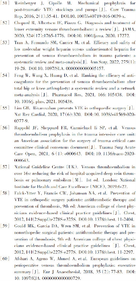 创伤骨科患者围术期下肢静脉血栓形成诊断及防治专家共识(2022年)