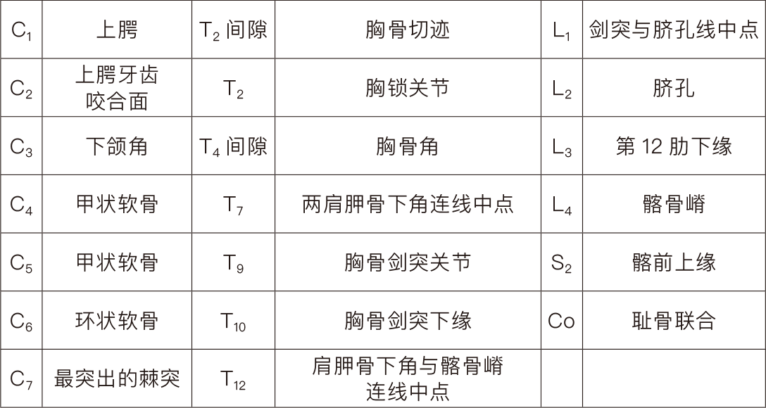 1.脊柱体表标志有哪些?