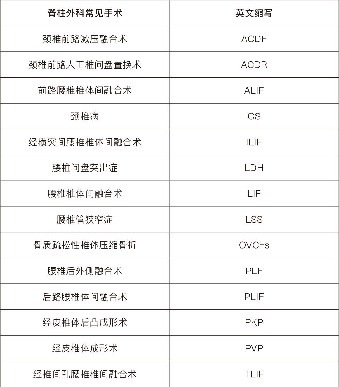 有问必答|脊柱外科常用数据和英文缩写汇总