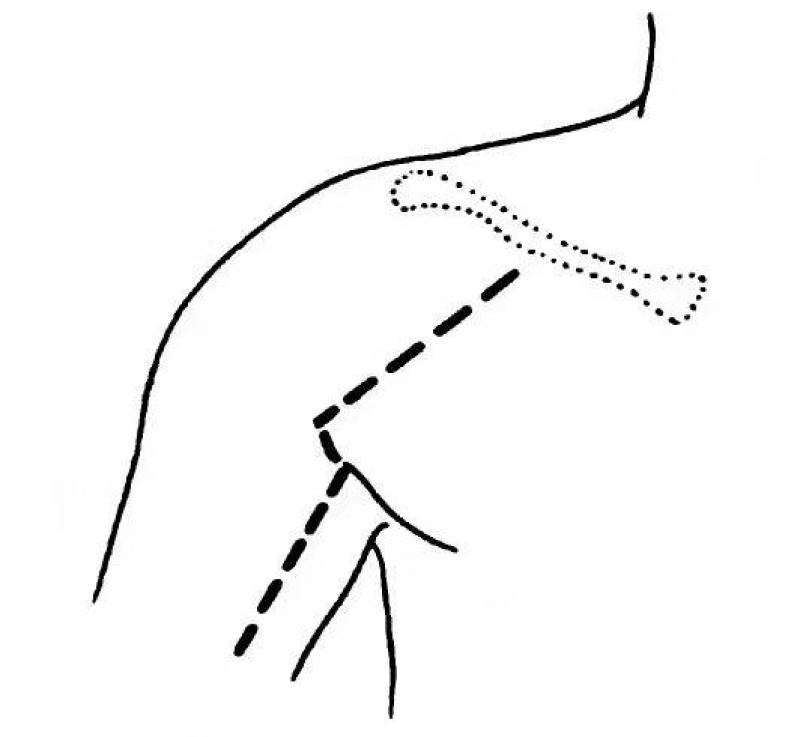 锁骨下切口从锁骨中外1/3交界处开始,向外下方沿三角肌与胸大肌交界处下行至腋窝前臂,然后弯向上臂内侧伸屈肌之间的肌间隔为止。切开皮肤、皮下组织及筋膜,在三角肌与胸大肌之间分开,碰到头静脉可牵向内侧。