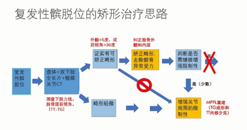 ①下肢外翻和扭转畸形导致的轨迹异常,合力增加,是髌骨脱位的根本动因,限制性因素的减弱是脱位的诱因。