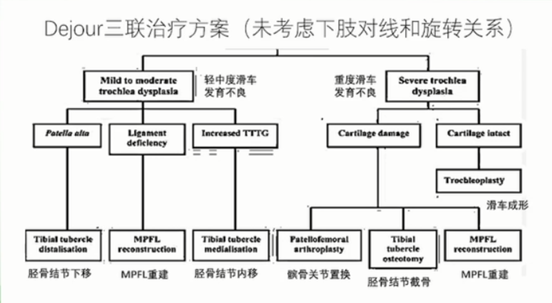 运医常见三联治疗组合疗法:MPFL重建(软组织);滑车(TG)成型(骨性);胫骨结节(TT)内移。