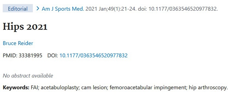 文献出处:Bruce Reider. Hips 2021. Editorial, Am J Sports Med. 2021 Jan;49(1):21-24. doi: 10.1177/0363546520977832.