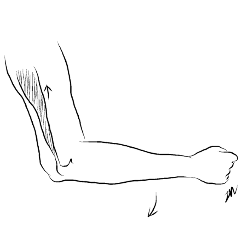 运动——肱三头肌、腕屈肌、指伸肌;