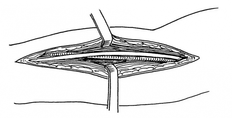 图3 显露正中神经的切口