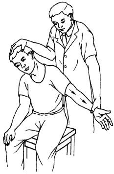 被检查者端坐,检查者立于其身后,两手分别托住其下颌,并以胸或腹部抵住其枕部,渐渐向上牵引颈椎,如上肢麻木、疼痛等症状减轻或感颈部轻松为阳性。
