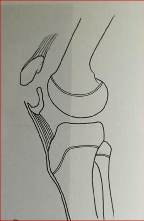 考虑此患儿伤后已3周,组织全科讨论,确定诊断为:髌骨上极陈旧性套状撕脱骨折。充分与家属沟通远期预后。