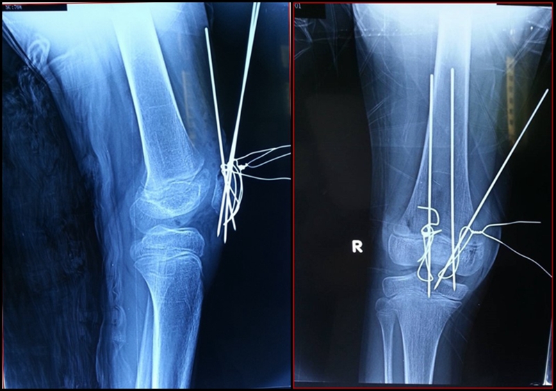 4.术后3个月骨折愈合,膝关节功能屈伸活动0-120°;