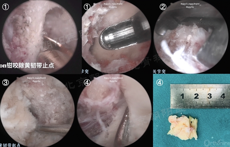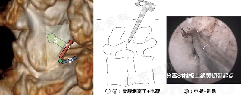 ③显露下位椎体椎板上缘并分离黄韧带起点;