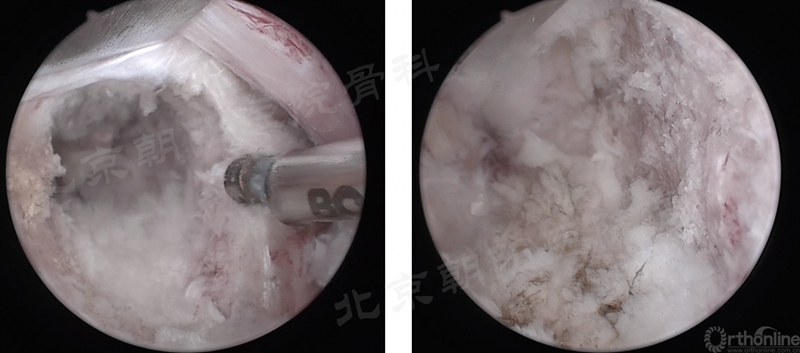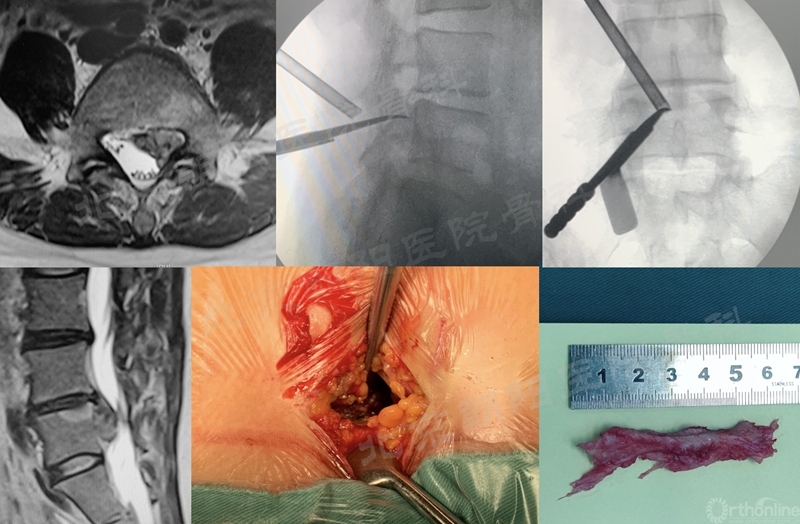 #2例UBE,游离型LDH,未做好充分的上关节突内侧减压,误把硬膜当做突出的间盘,导致硬膜撕裂。及时转切开减压,取出大块髓核组织。