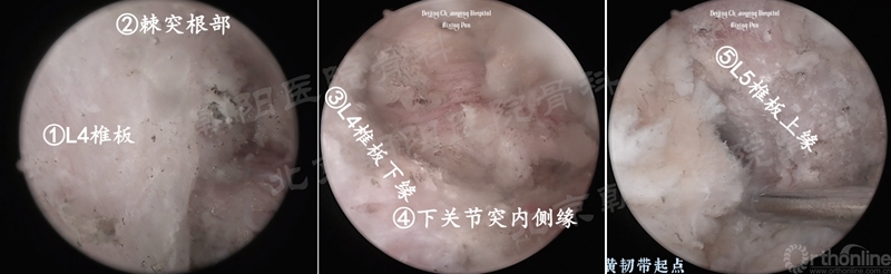 1、显露L4椎板下缘-L4/5关节突-L5椎板上缘;