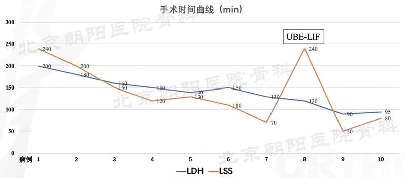 UBE手术时间曲线:10例LSS(含1例UBE-LIF)和10例LDH