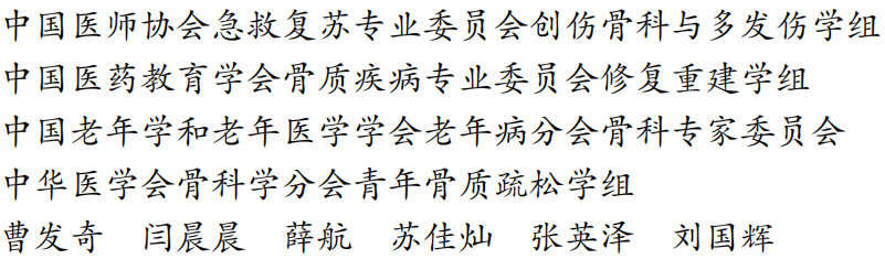 本共识并非老年髋部骨折的临床治疗标准,仅为学术性指导建议,不作为法律依据。在病人个体情况与实际临床条件等各种因素制约下,临床治疗方案依实际情况因人而异;随医学科技发展,本共识部分内容将进一步完善。