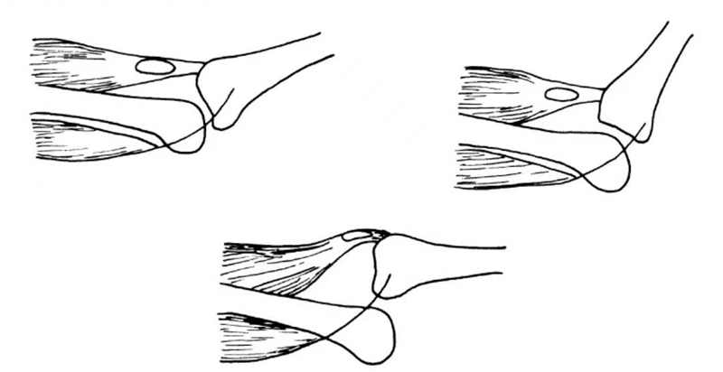 Ⅲ型:在先天性囊肿内发生假关节,一般在胫骨中1/3和下1/3交界处。可先有前弯,随后是骨折。治疗后再发生骨折的机会较Ⅱ型为少。