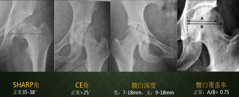Ⅰ度:轻度髋臼发育不良。股骨头覆盖虽不完全,但仍位于轻度不良髋臼中心,CE角在11°-35°之间;