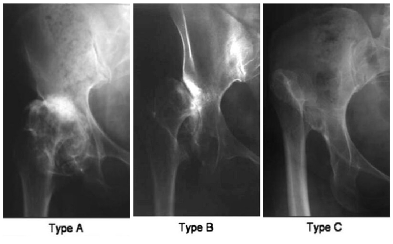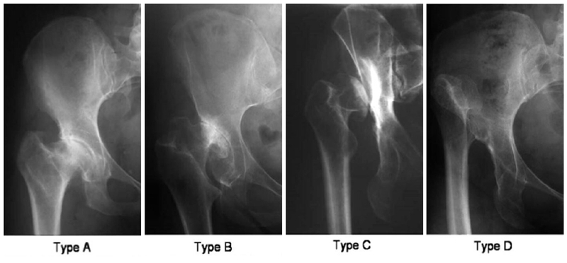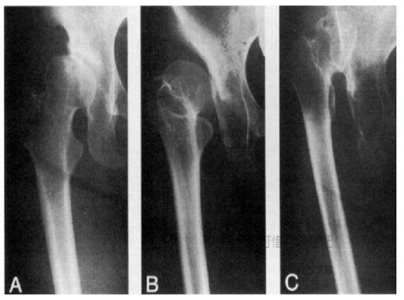 Hartofilakidis于1996年提出成人DDH的简化分型方法。根据DDH病变程度的不同,使用三种类型分别对应髋关节发育不良、髋关节半脱位及髋关节脱位三种改变。