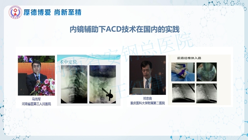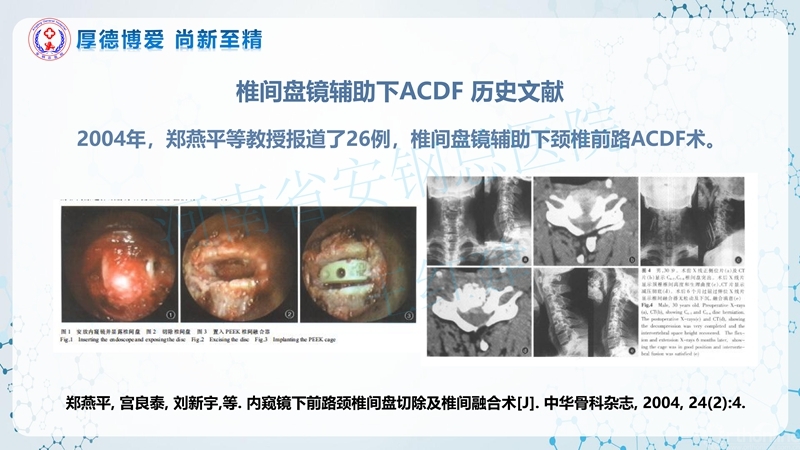 为进一步探索脊柱内镜的临床应用价值,河南省安钢总医院脊柱微创团队在颈前路椎间盘切除融合术(Anterior cervical decompression and fusion,ACDF)的基础上,进一步结合脊柱内镜技术的优势,力求让创伤更小、术野更清晰、患者获益更大。