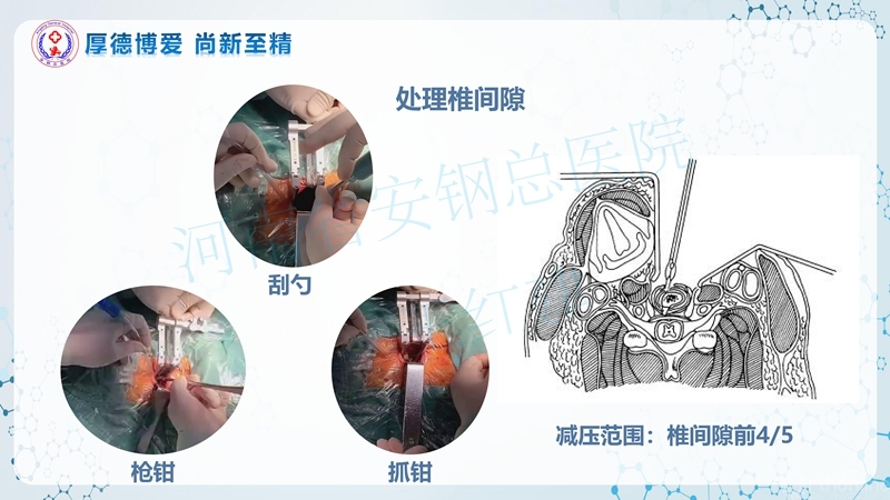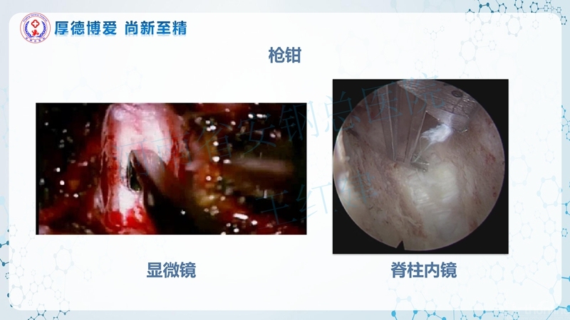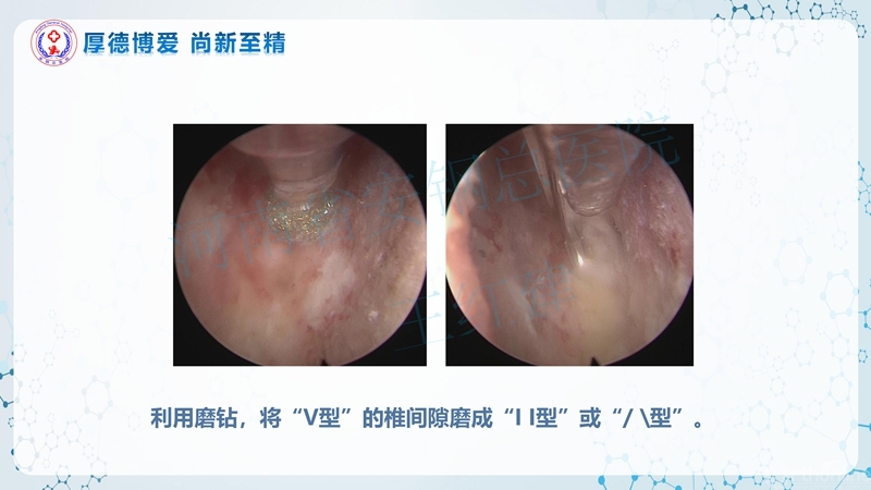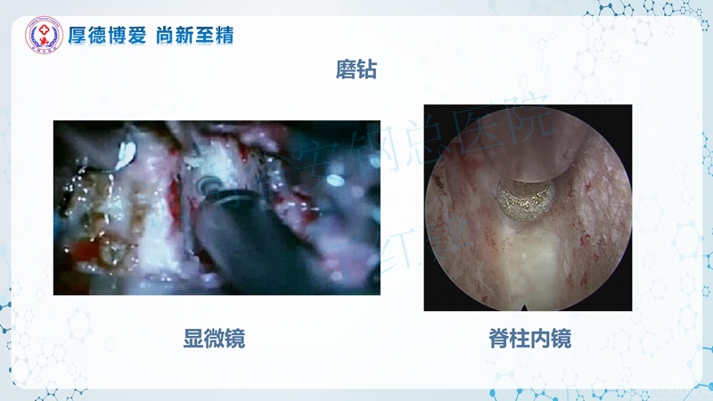 4. 镜下的枪钳及磨钻对椎体后缘致压物的处理,更加安全、可靠;