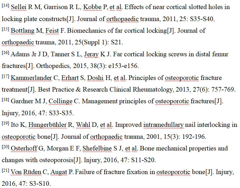 在绝经后骨质疏松性骨折的治疗过程中,骨科医生应当充分了解骨质疏松性骨折的生物力学特点,综合各种内植物的优点,同时应用骨折固定原则,使患者能够尽早负重、活动,恢复骨折部位的功能。全身抗骨质疏松治疗与手术治疗同等重要,充分掌握不同手术固定方式的优势和局限,以便在治疗骨质疏松性骨折时选取最优的手术方式。