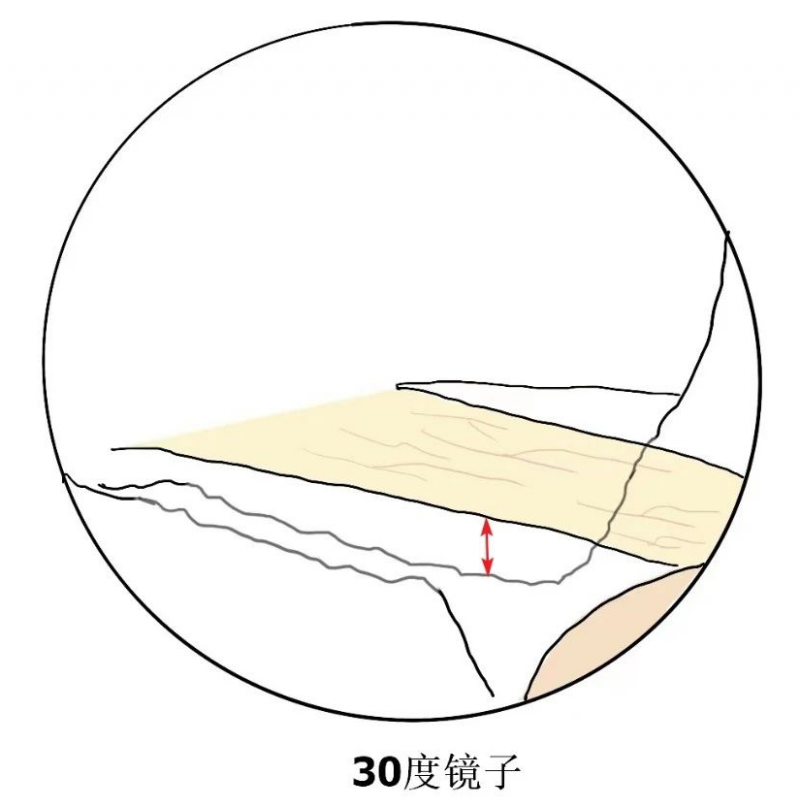 当我们用30度镜子看到减压范围足够的时候,使用0度镜子观察可能减压范围并不足够。这并不是说30度的镜子不能做到充分减压,可能需要掌握一定技巧和经验以便用30度镜子完成充分减压。