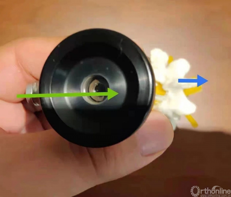 我们可以确保30度的镜子对向尾端或头端以评估减压的范围,这样中线及关节突关节方位的视野不会出现视野偏差,也就是确保冷光源接口与横突中线平面平行。