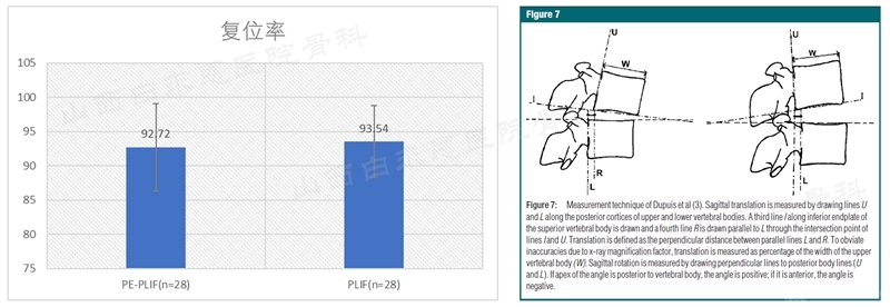 PE-PLIF with ULBD组和PLIF术组的腰椎滑脱复位率无统计学差异(P>0.05)