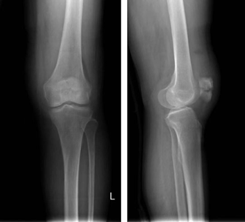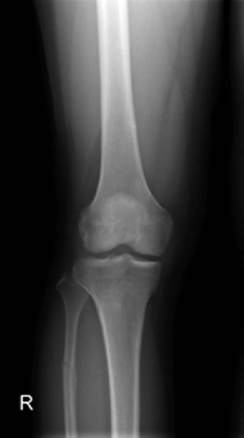 图1 正常膝关节正位X线平片显示了髌骨的正常位置