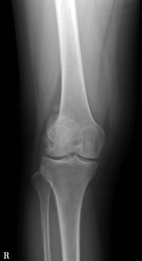 X线检查是诊断髌股关节疾病的重要影像学方法,不仅方法简单,费用低廉,而且在显示股骨-胫骨关节间隙和髌股关节骨的畸形方面优于CT和MRI。髌股关节X线检查通常包括膝关节正位、侧位及轴位像,今天为大家介绍X线正位像表现。