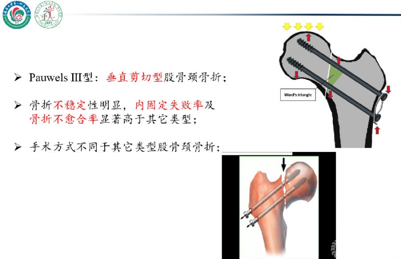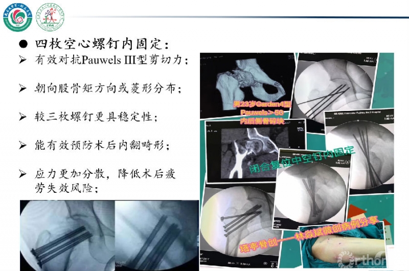 多用于新鲜青壮年股骨颈骨折;三角形平行螺钉抗拔出及抗剪切能力较弱;“正/倒三角”空心螺钉对于剪切型股骨颈骨折均存在较高失败率。