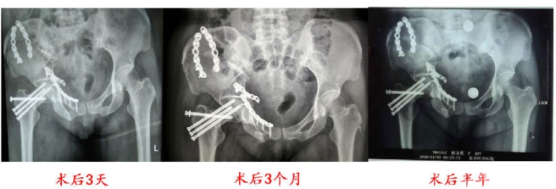 (2)复查X线内固定物位置良好,骨折线已经模糊。