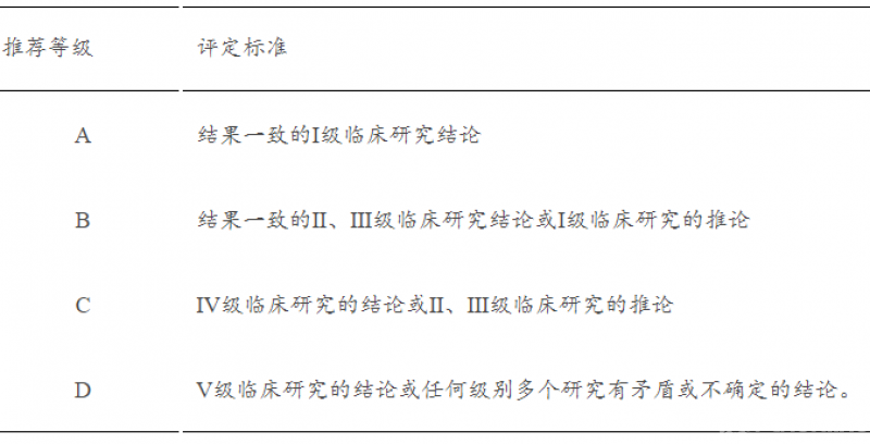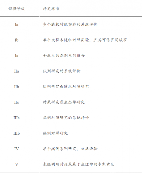 表2 Cochrane中心证据推荐等级评定标准
