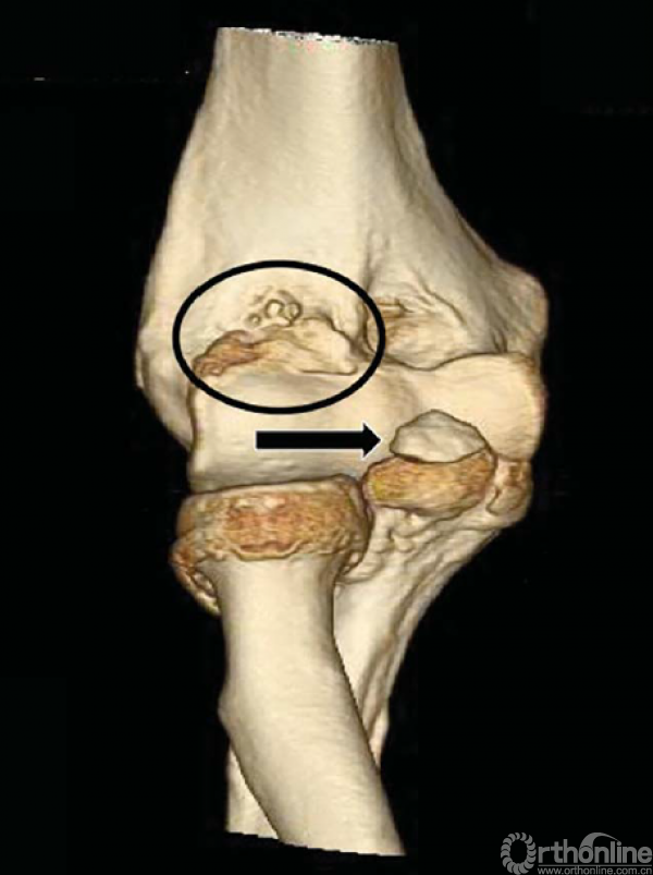 CT(尤其是三维重建)有助于确定骨赘位置以制定手术计划。例如,如果大部分骨赘形成在后方,手术最好从鹰嘴窝开始,然后处理前方。