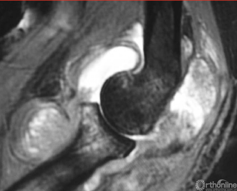 CT可用于评估骨性结构改变。MRI显示滑膜炎的范围(图5)和未骨化游离体。
