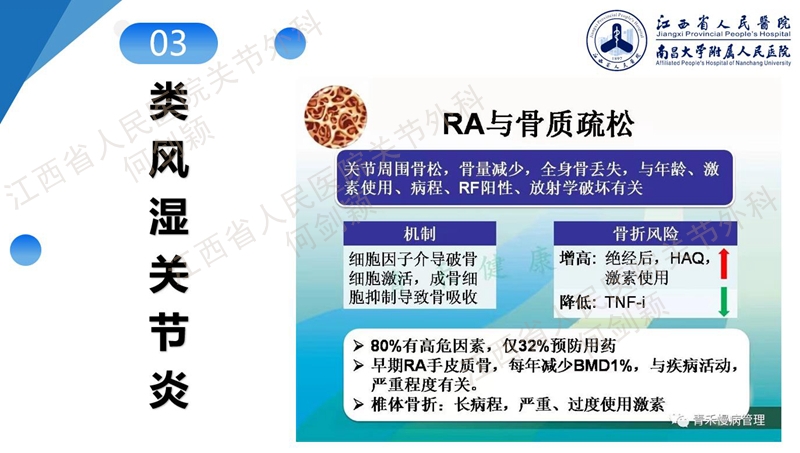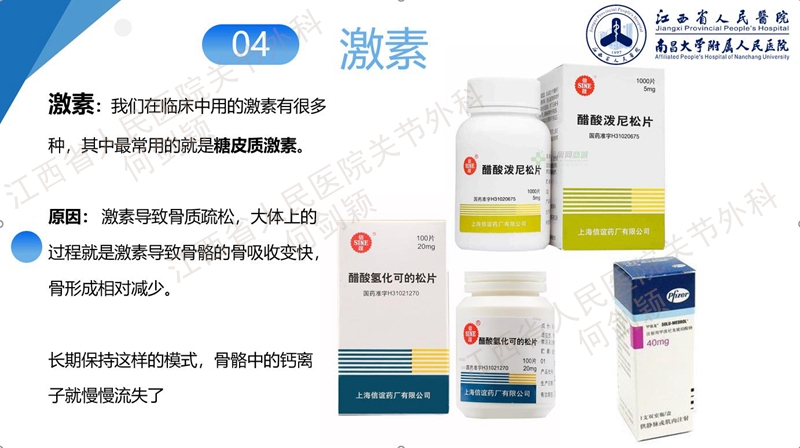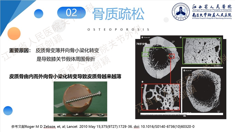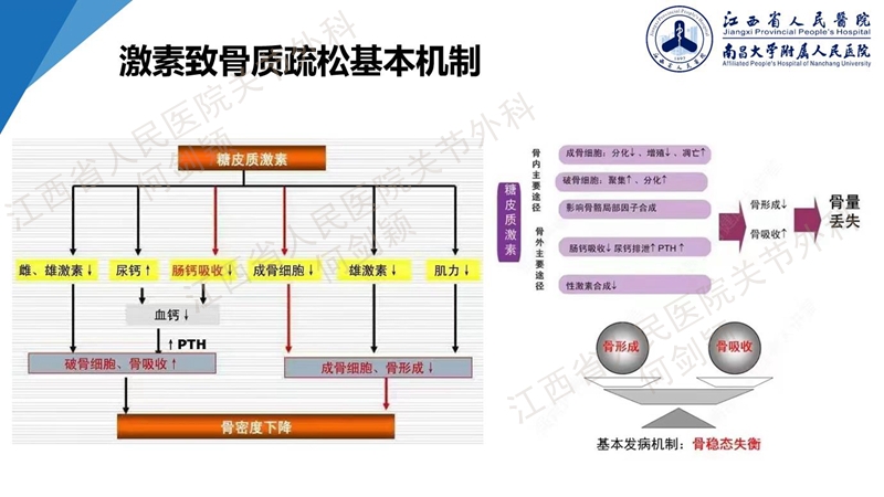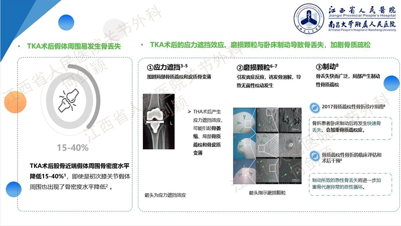 骨质疏松、使用激素以及类风湿关节炎都是膝关节股骨假体周围骨折的发病机制,都是抑制成骨细胞、释放破骨细胞,继而造成骨密度下降。
